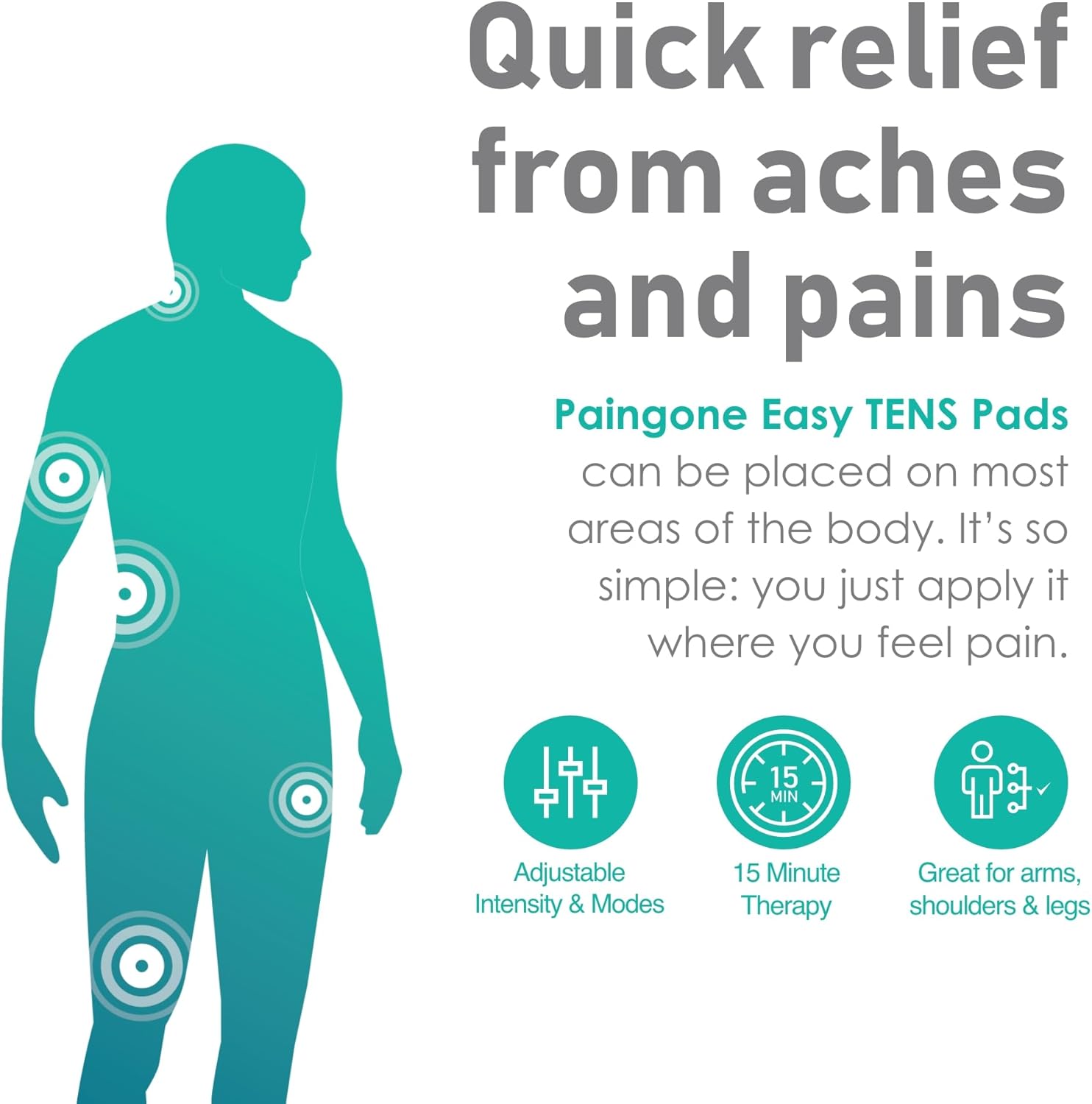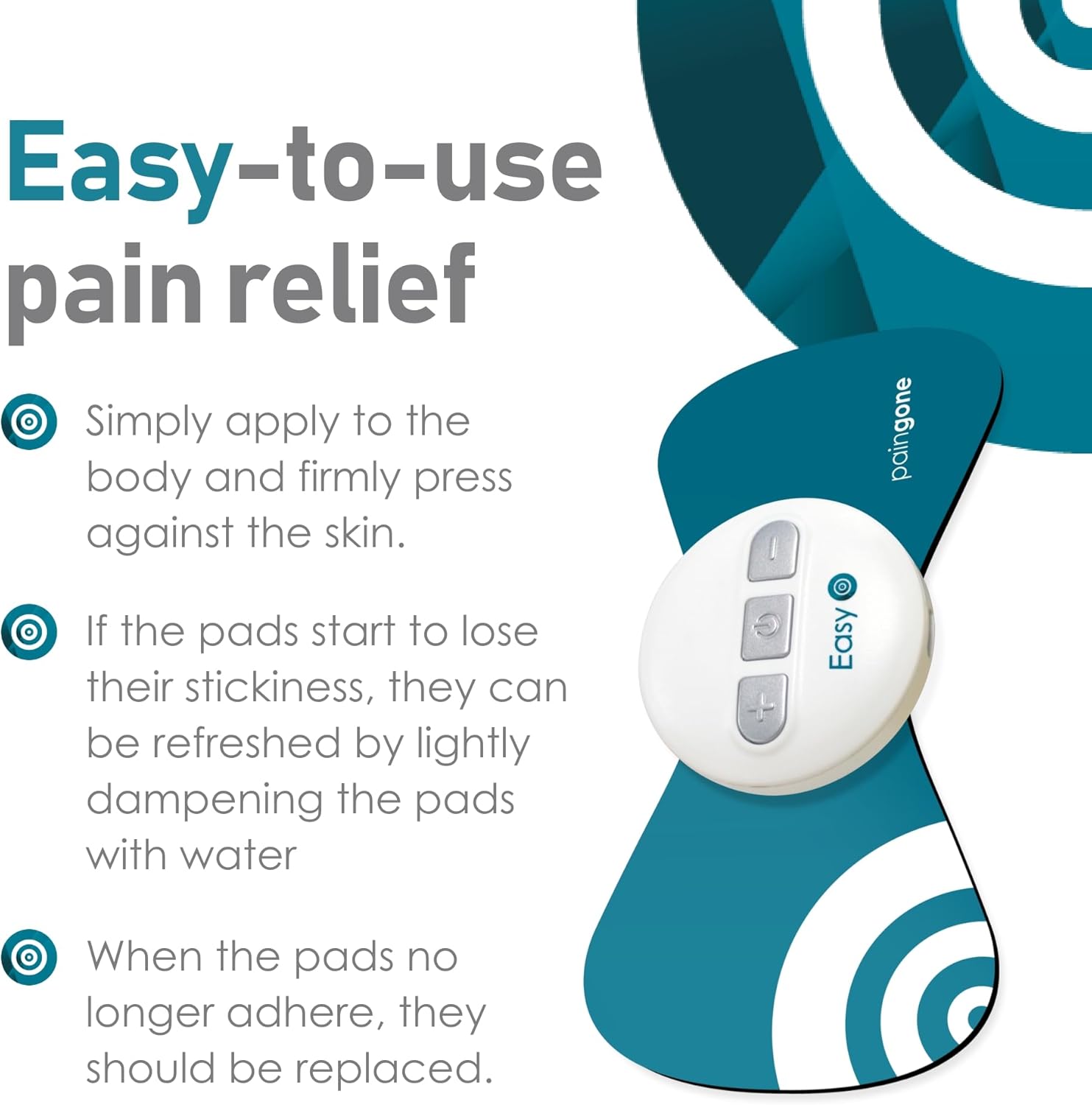 Paingone Easy delivers relief at the touch of a button to the places you need it most. Its proven TENS (Transcutaneous Electrical Nerve Stimulation) technology stimulates the nerves to cause a release of endorphins. These naturally-occurring neurochemicals are